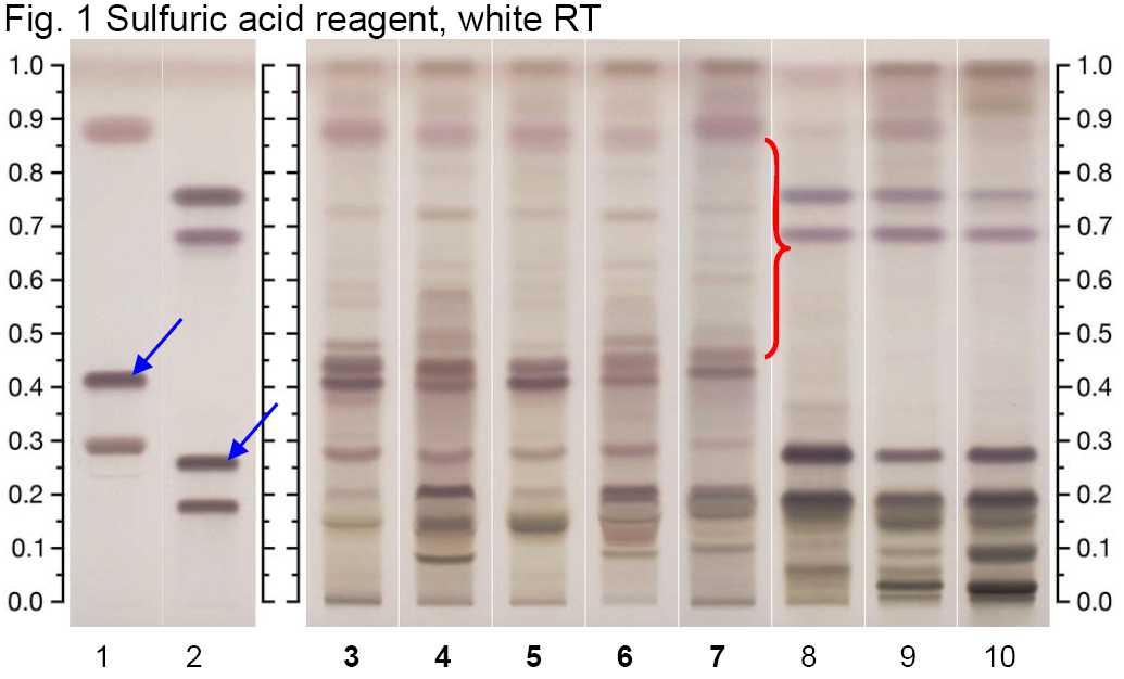 1. 5 μL Bacopaside, bacoside A3, bacosine (with increasing Rf)